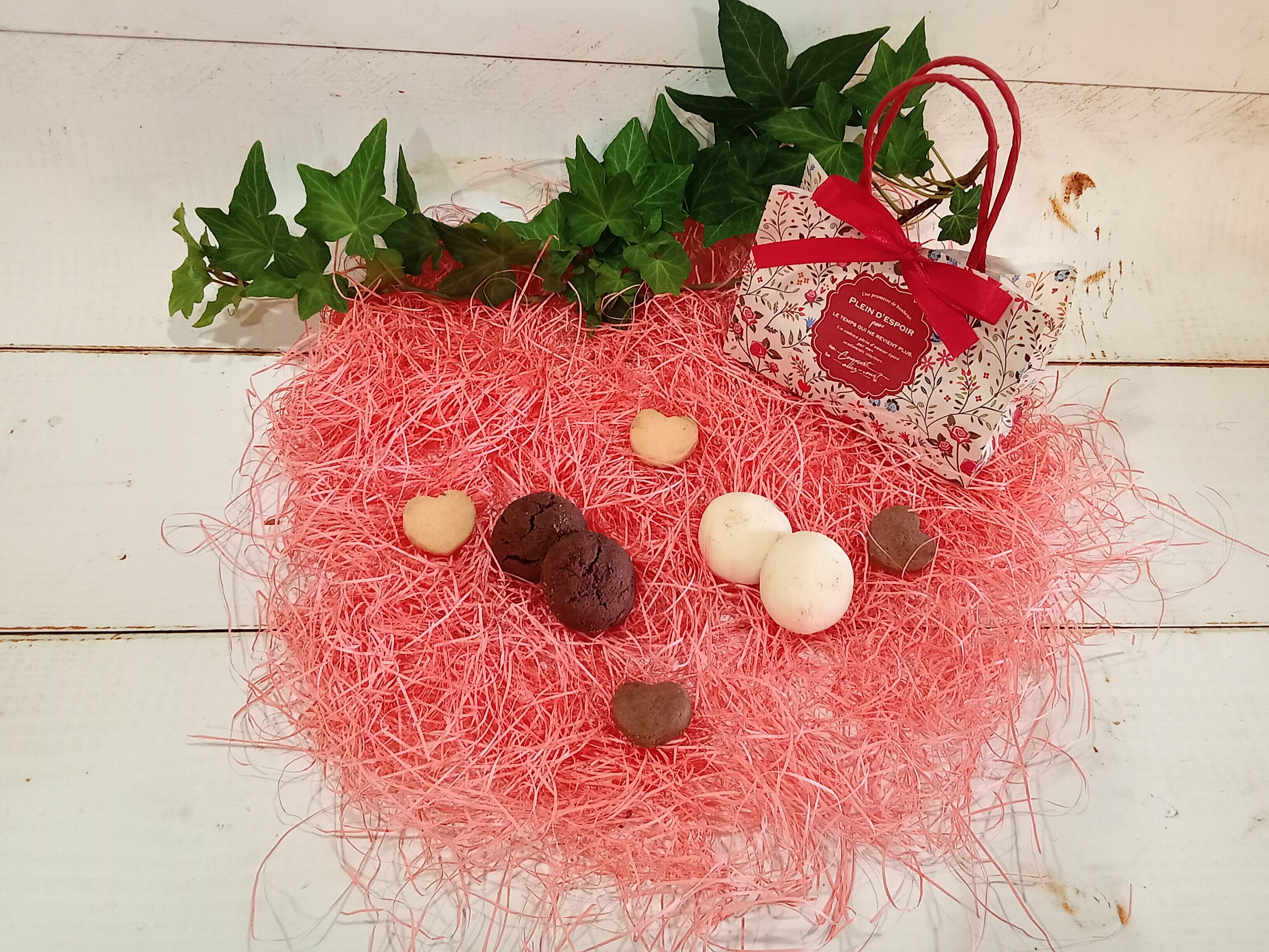 ほろほろクッキー2種類とハートのシュガークッキー2種類が入っています。
